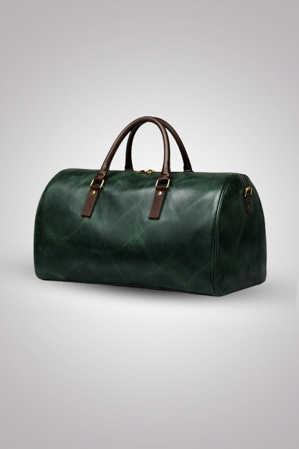 Make a bold statement with this premium green leather duffle bag, crafted from high-quality genuine leather for a perfect blend of luxury and durability. Featuring a rich vintage-inspired finish with contrasting brown handles, this bag stands out while maintaining a timeless appeal.