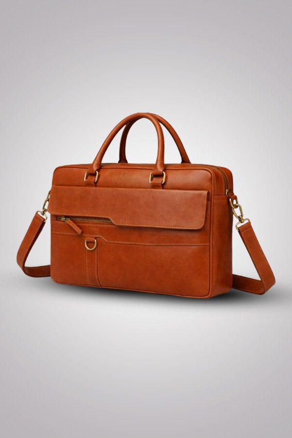 Refine your professional look with this Vintage Tan Leather Laptop Bag, crafted for modern professionals who value both style and practicality. Made from premium leather with a smooth vintage finish, this bag offers a sleek yet functional design. Featuring a front flap pocket with zipper detail, it combines elegance with convenience—perfect for office, meetings, and business travel.